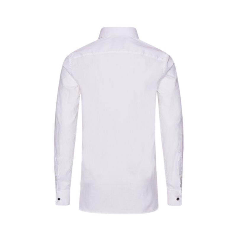 Oscar Jacobson | Regular Fit Cut Away Tuxedo Pleated Poplin Shirt | White